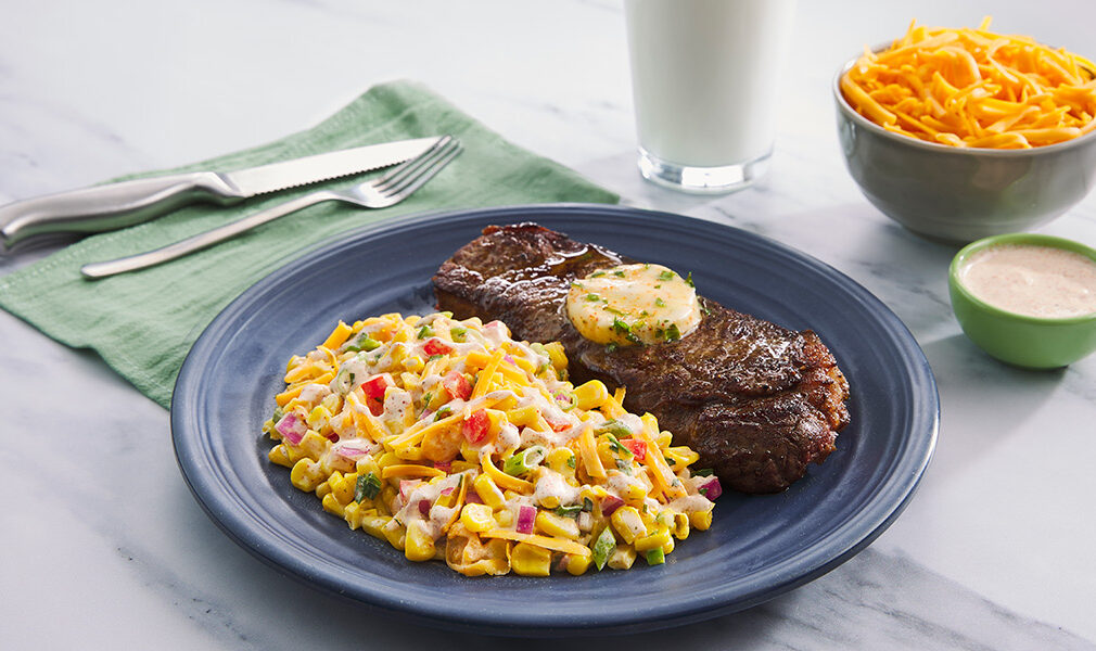 This creamy, cheesy corn salad is the ultimate summer side. Sweet corn, sharp cheddar, creamy yogurt and sour cream make this the perfect salad for BBQs and picnics.