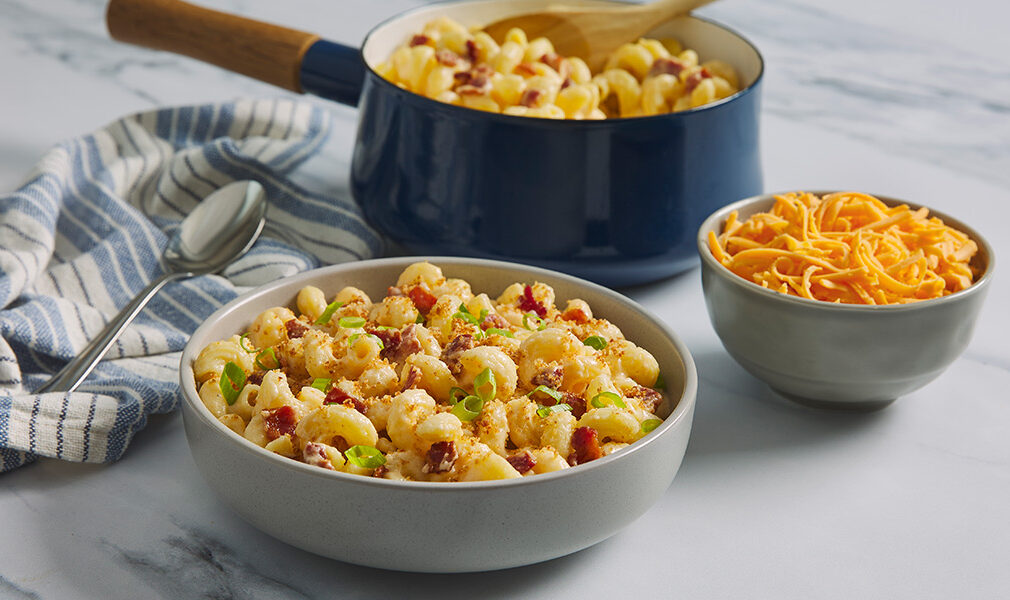 - StepDivide the mac and cheese between 6 bowls and top with breadcrumbs and green onions.