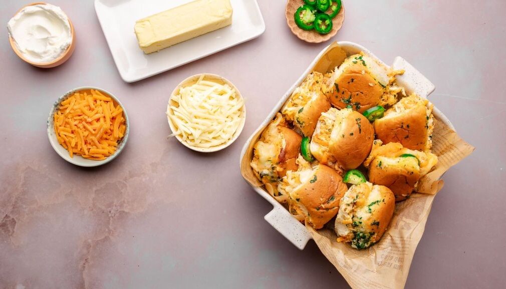 These Buffalo Chicken Sliders get their magic from cheddar, mozzarella, and sour cream made right here in Ontario. Soft rolls soak up sour cream and a buttery herb topping, while cheddar and mozzarella bring the perfect cheese pull. Easy to prep, bake, and share. It’s the kind of crowd-pleasing bite that only happens when really good dairy shows up—thanks to Ontario dairy farmers.