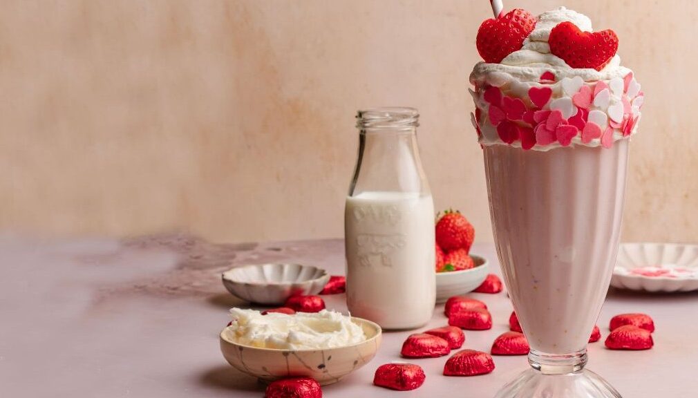 Make Valentine’s Day extra sweet with this rich and creamy milkshake made with ice cream, milk and fresh whipped cream from right here in Ontario. A festive pink treat that’s easy to blend, fun to garnish, perfect for date night or a galentines celebration.